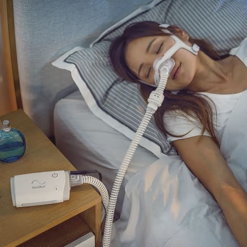 O CPAP Portátil AirMini AutoSet da ResMed é um dispositivo compacto, leve e inteligente, desenvolvido para terapia respiratória com modos CPAP fixo, AutoSet tradicional e AutoSet for Her. Pesando 300 gramas, possui design ultracompacto com dimensões de 5 × 8 × 13 cm, ideal para portabilidade em deslocamentos e viagens.